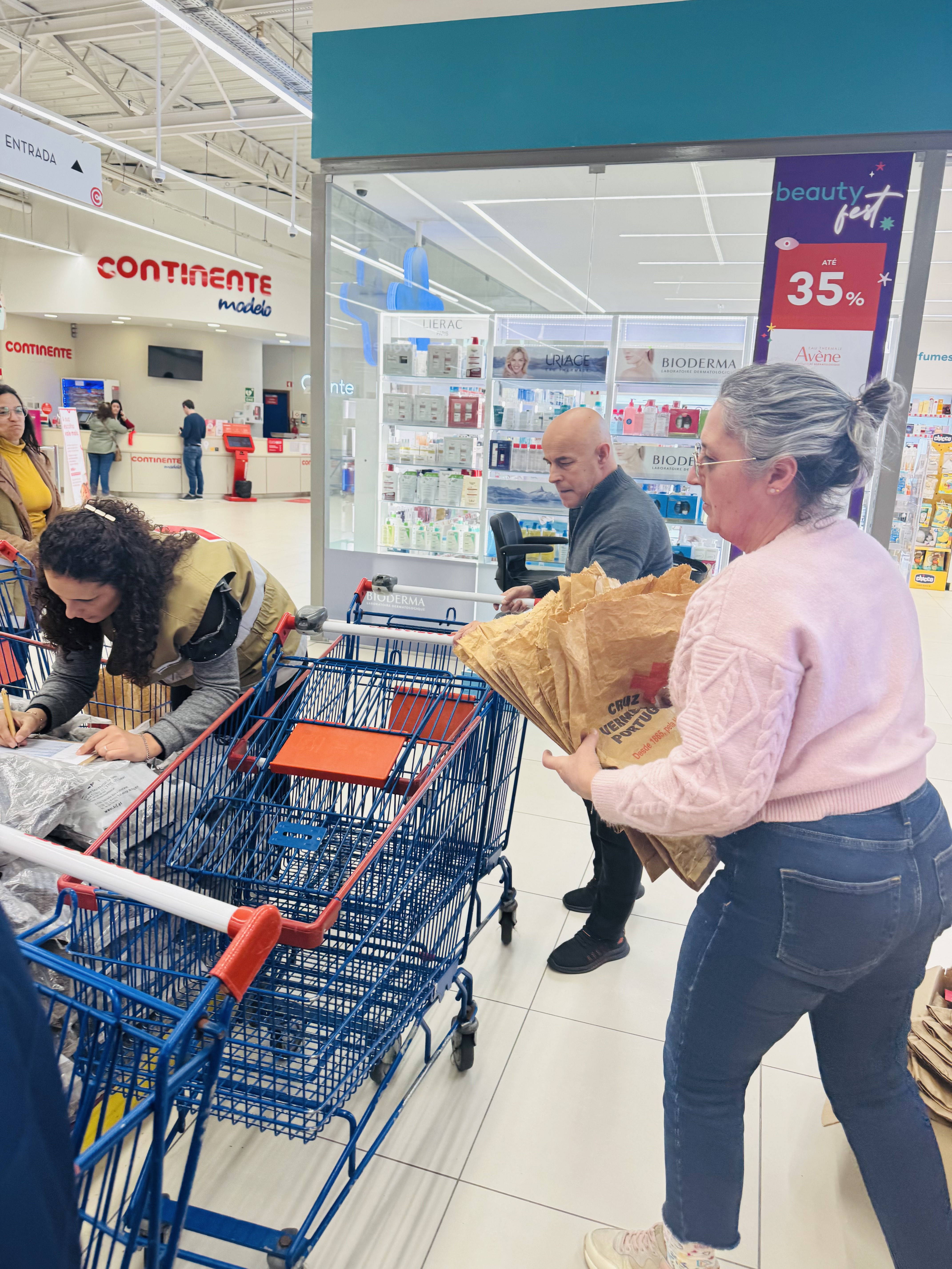 Estivemos, fisicamente, no Continente da Trofa, no Pingo Doce de Santiago de Bougado e de S.Romão do Coronado a fazer a recolha alimentar.